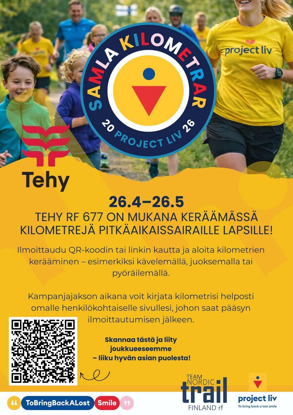 Tehy 677 osallistuu Project Livin järjestämään Kerää kilometrejä -kampanjaan. Kampanja järjestetään 26.4.–26.5.2026, ja kaikki halukkaat ovat lämpimästi tervetulleita mukaan joukkueeseemme.